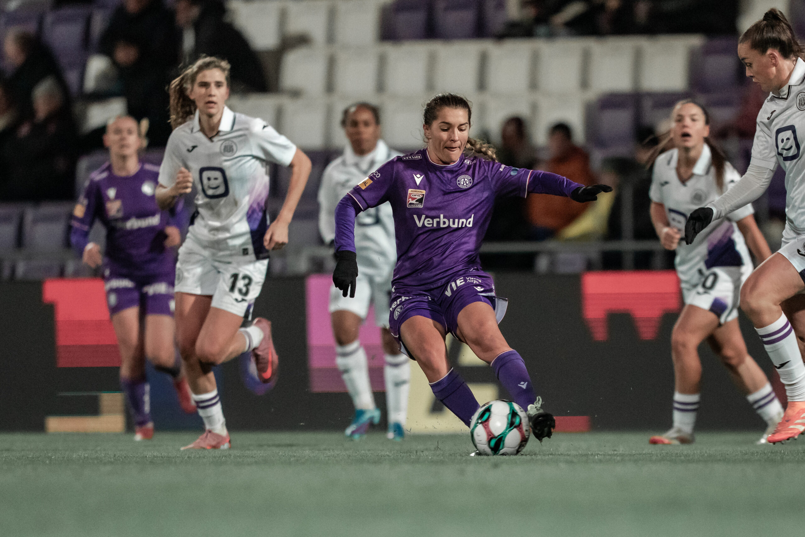 Mit dem 1:0-Erfolg aus dem Hinspiel im Rücken starteten die Veilchen wach und selbstbewusst. Trotz belgischem Druck blieb die Defensive ruhig, kompromisslos und gut organisiert. Immer wieder waren es Katharina Schiechtl und Torfrau Jasmin Pal, die in entscheidenden Momenten Sicherheit ausstrahlten.