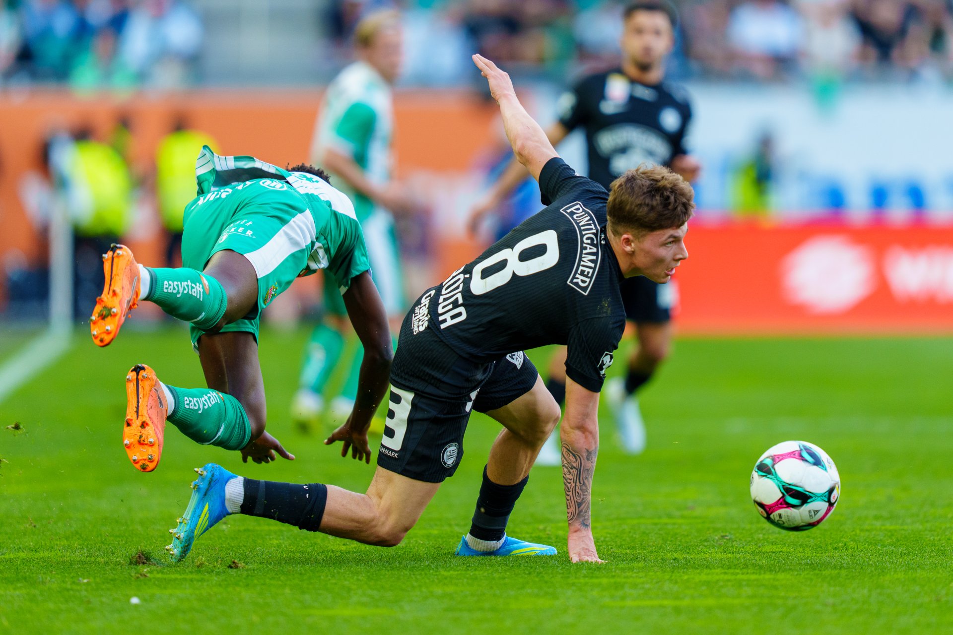 Sturm blieb hingegen bei Umschaltsituationen gefährlich. Eine der besten Möglichkeiten hatte Giso Mamageishvili, dessen Abschluss an der Außenstange landete. Danach flachte die Partie bis zur Pause etwas ab.